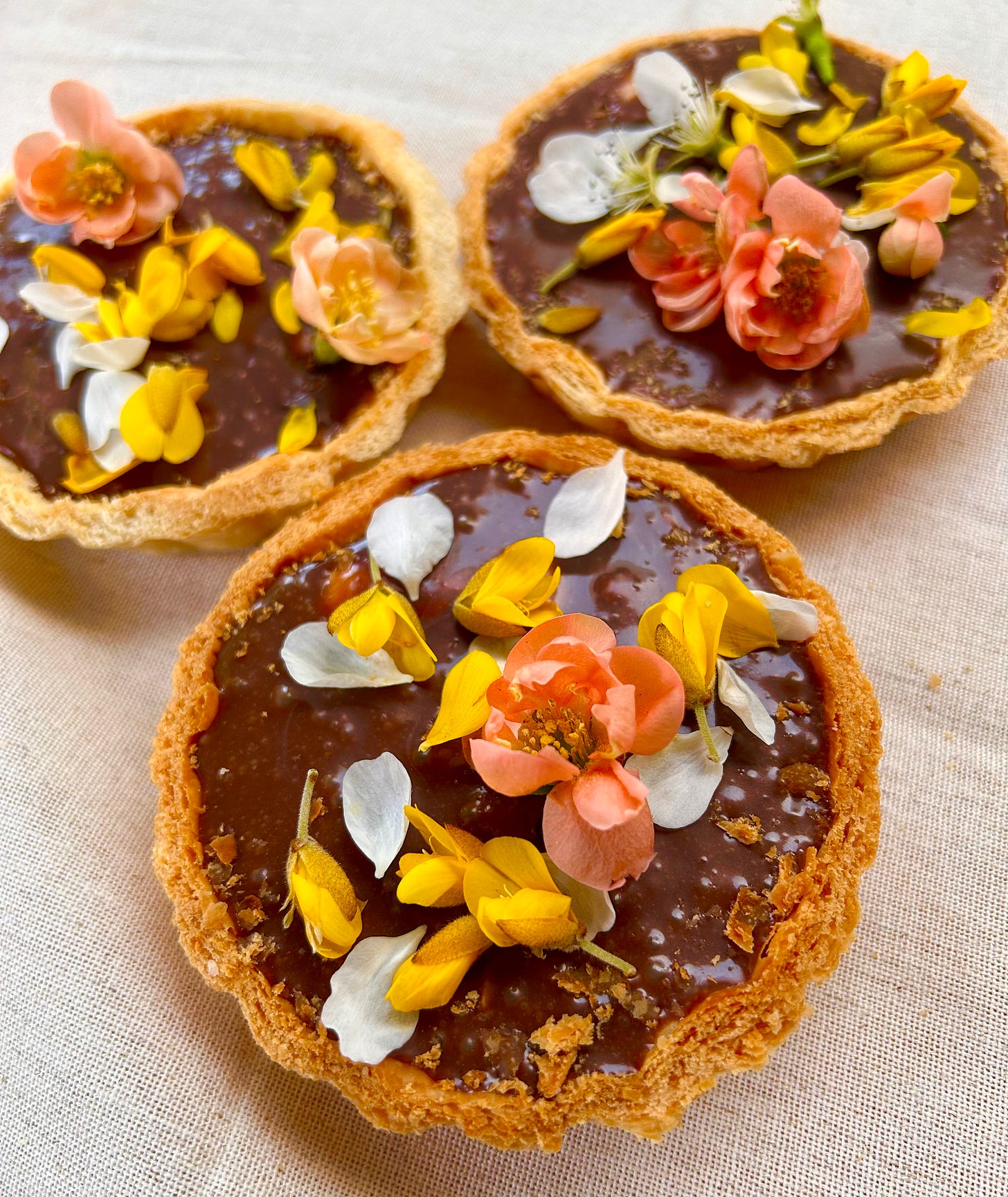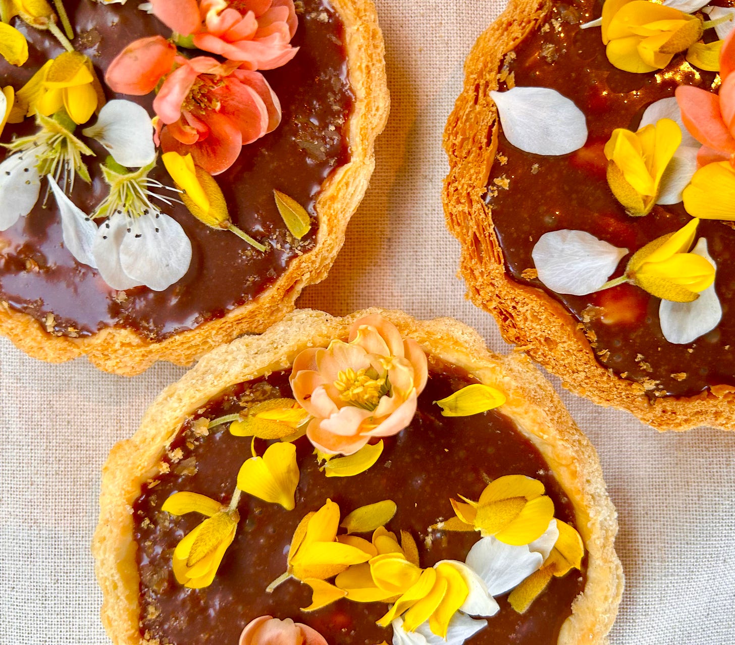 I’ll be nibbling mine from the top down, as usual, this year. But I’ll also be making more of these divine little tartlets, too. They’re perfect for enjoying over the Easter weekend and ludicrously easy! Just melt down your favourite chocolate bar (I used fruit and nut) or ‘leftover Easter eggs’ (haha) - or to round of any special dinner. They’re ridiculously easy to make, as you’ll see. And sprinkled with edible Spring flowers (DON’T USE DAFFODILS, THEY’RE TOXIC TO HUMANS) they’re pretty as a picture. Happy Easter to you all and may your Eastter egg hunts be fruitful.